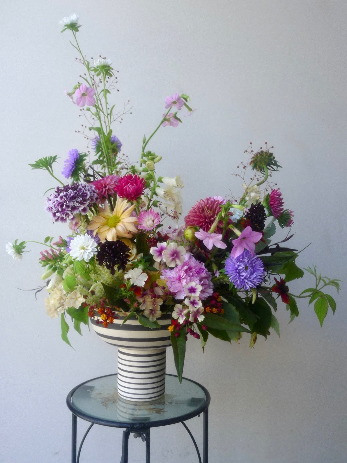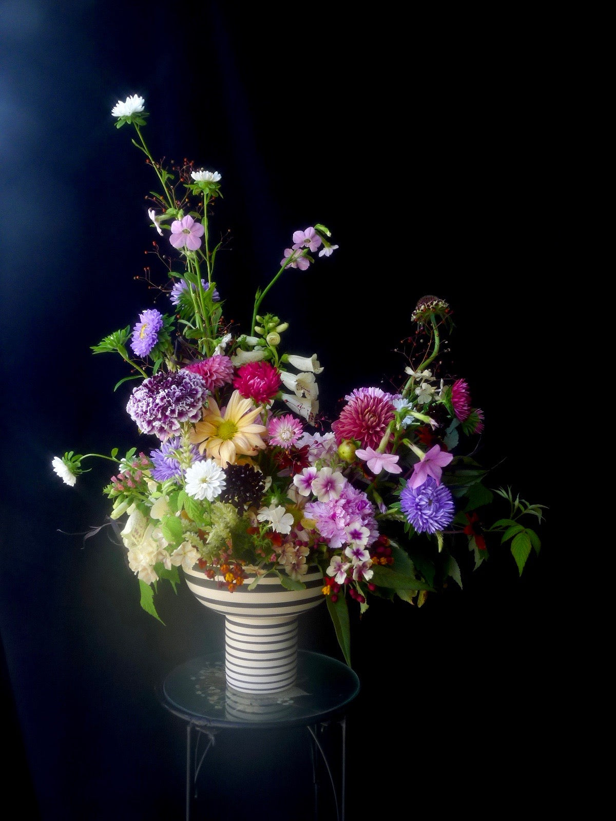 Lydia comes in a striped 6.5″ wide ceramic compote that mimics the pinstripes of Betelegeuse’s iconic suit. Her flowers are feminine, fall-themed, but not too on the nose. Expect a largely local selection with our signature flourishes. Lydia, Lydia, Lydia!